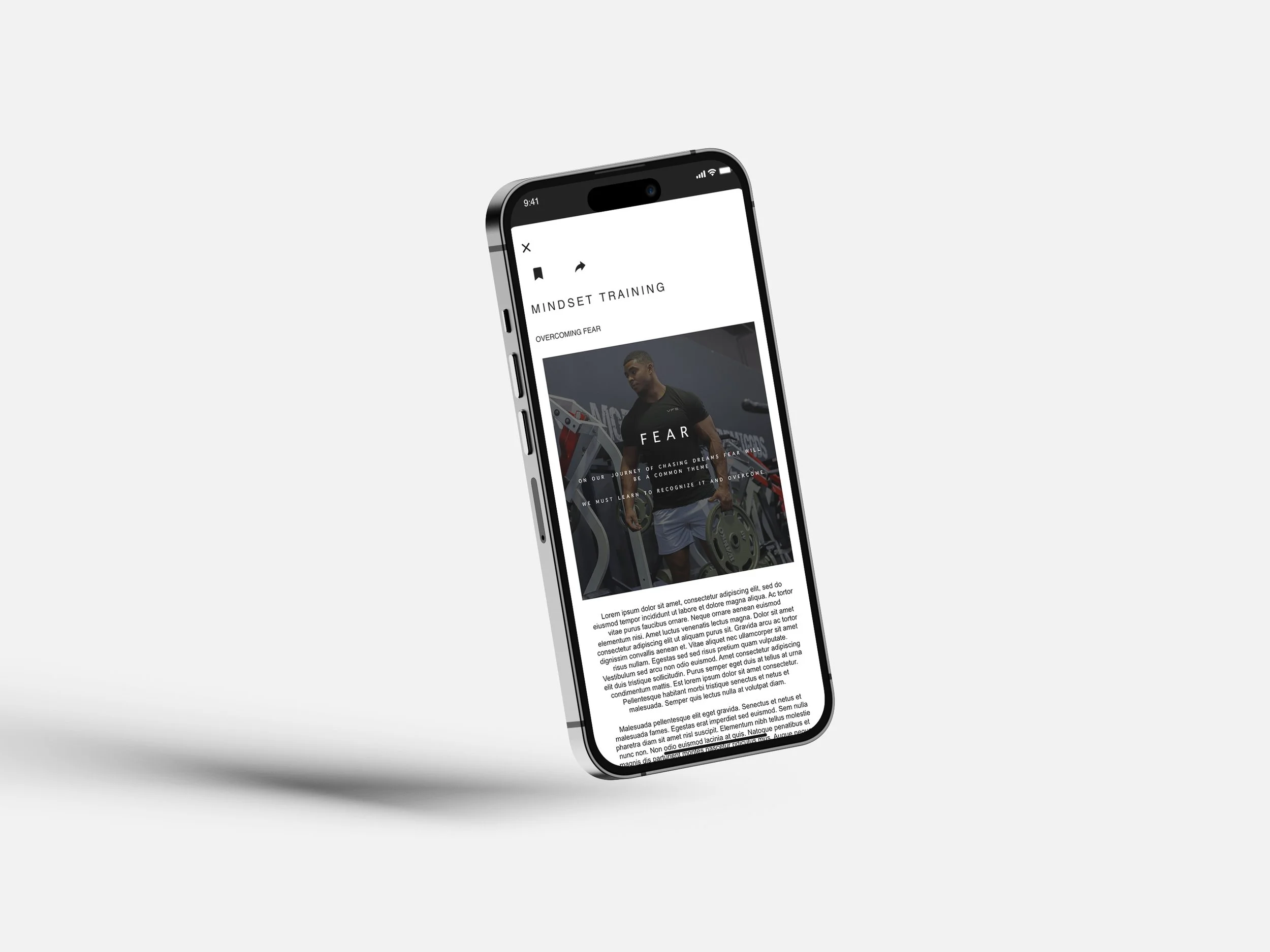 Mindset training is a critical aspect of this brand. In this section there would be articles written and published by the brand focused on personal development and growth. Users can interact and share these articles.
