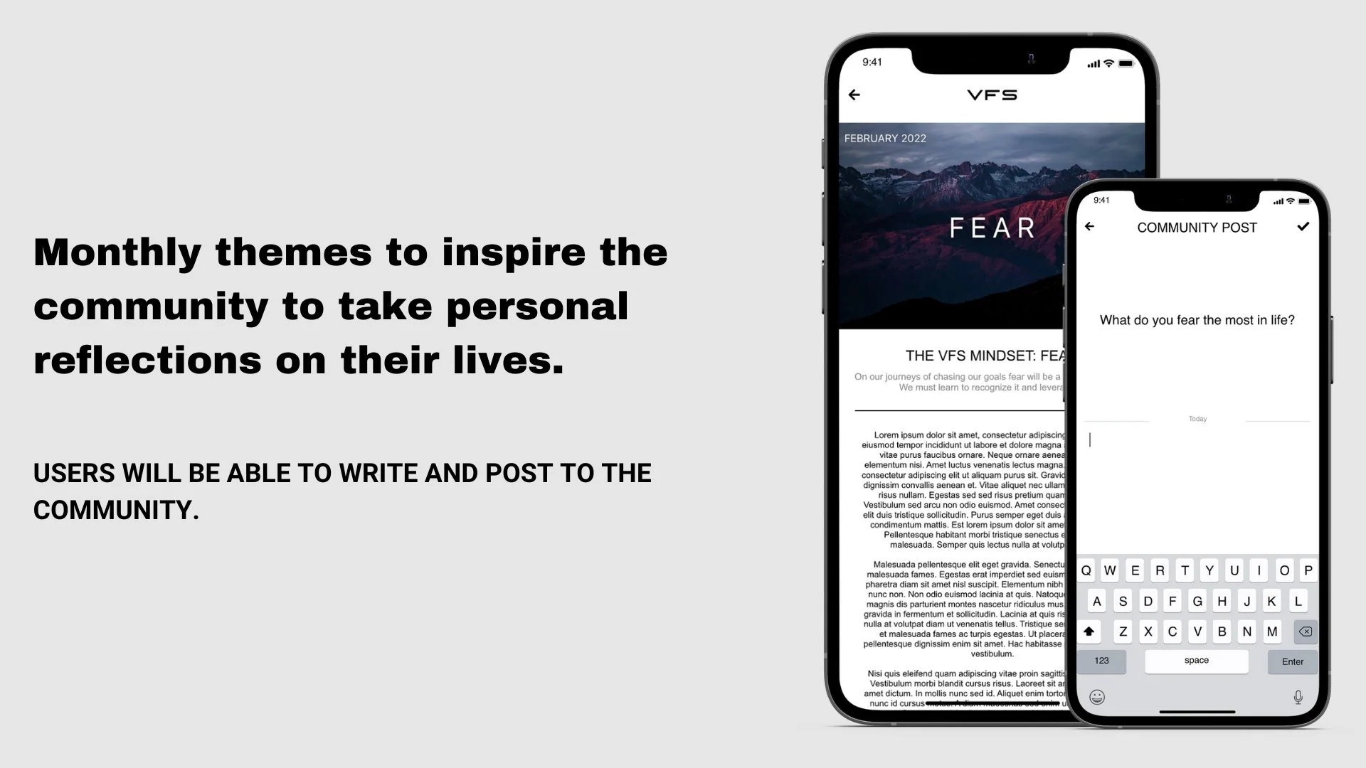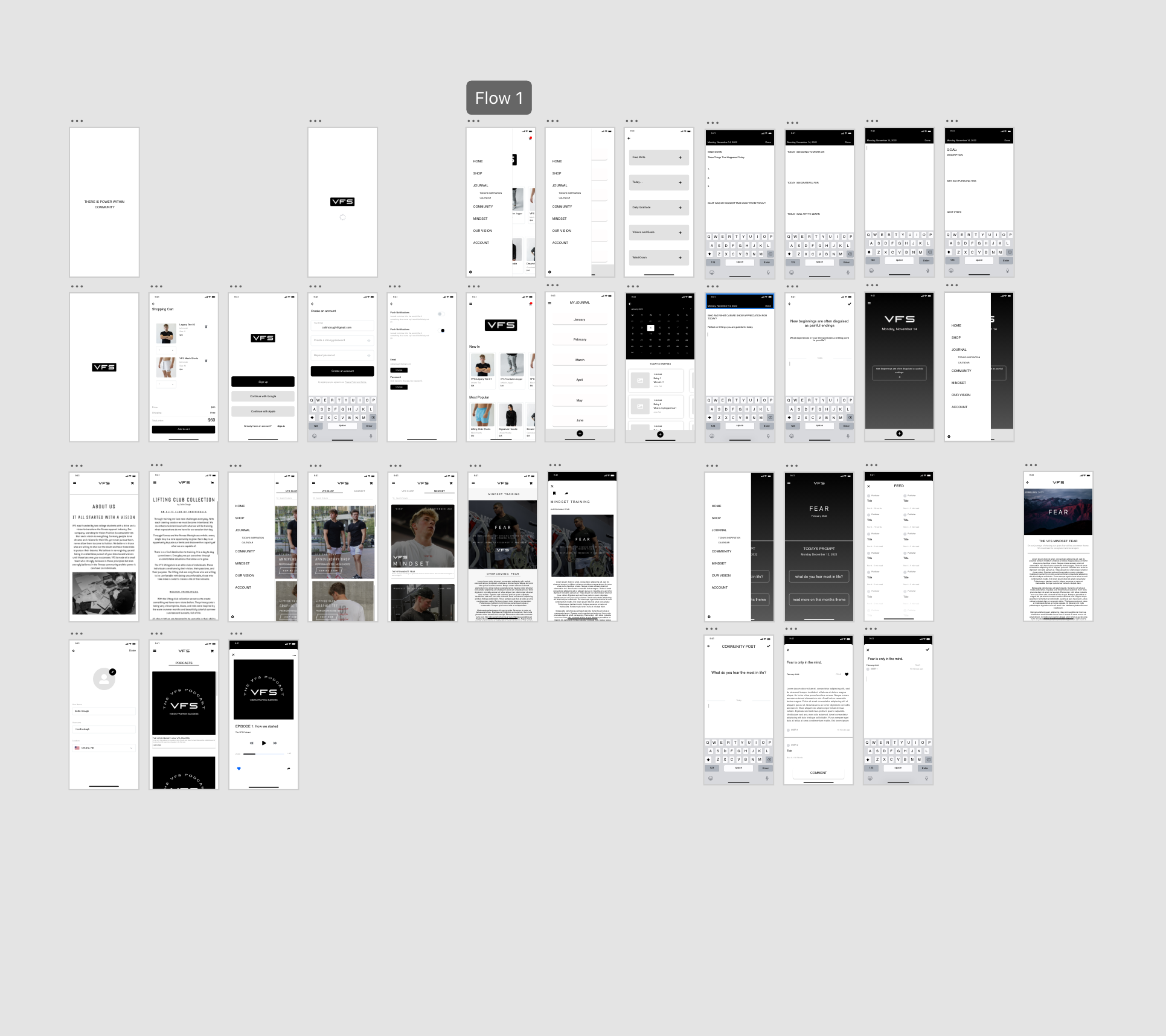 To develop a branded app that focused on bringing its customers into one community. The VFS brand is a mindset focused/lifestyle brand so the main objective was to tie in all areas that the brand focuses on and bring them into one interactive application for its users.