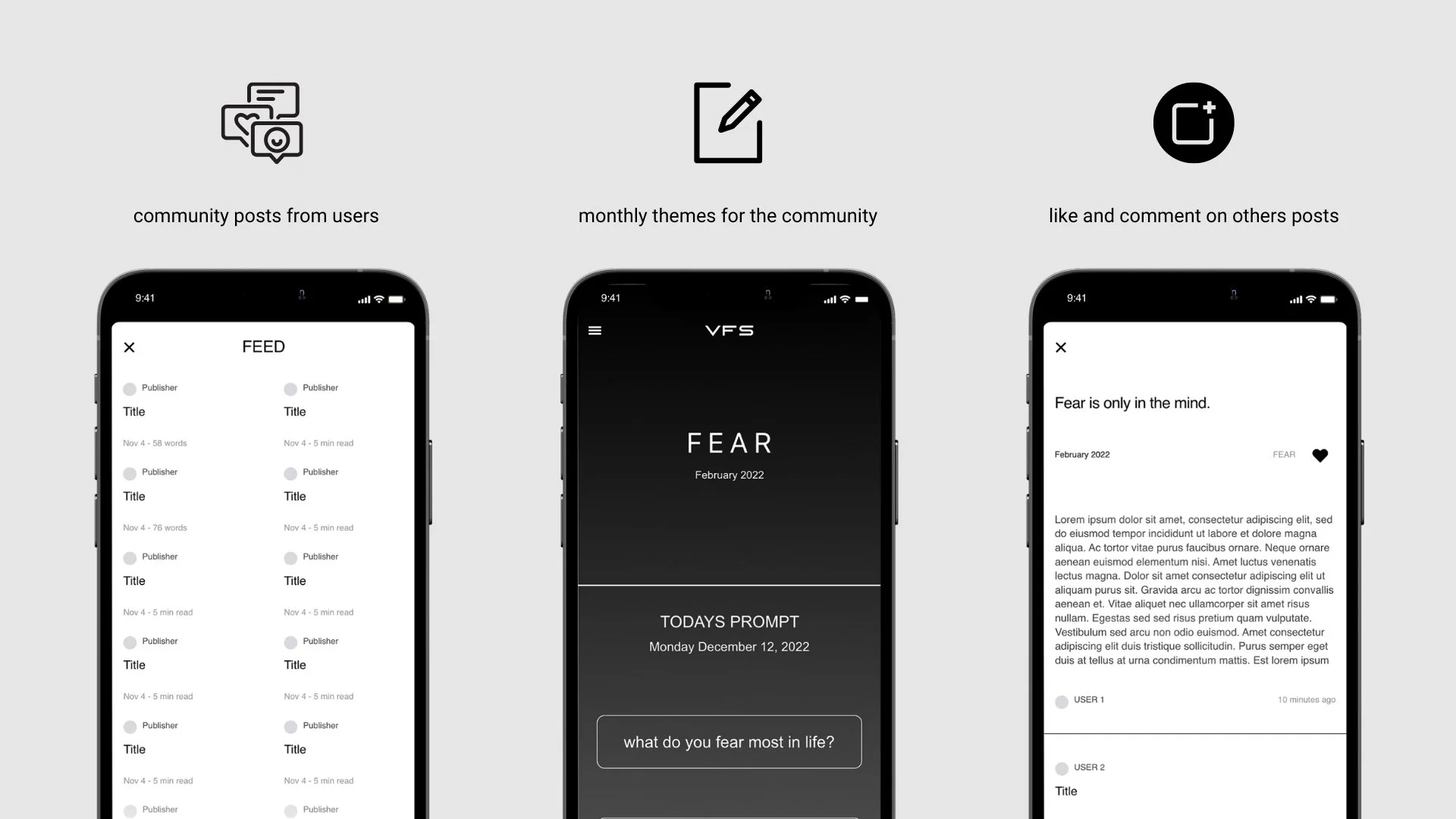 The community section of this application is what really tied together the whole purpose of this application. The community section would feature monthly themes to inspire the community to take personal reflection on their lives. Each day would feature a new prompt along with month by month themes. Users can then respond to the daily prompt and react and comment to others within the community.